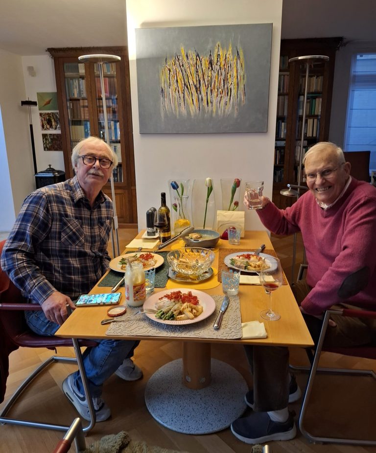 Het afscheid hebben we wel via de stream gevolgd. We missen dan het persoonlijke contact en dat is jammer. We vonden het een mooie dienst. Indrukwekkende, liefdevolle verhalen van alle 4. Ook al is het lang geleden (13 jaar) de ontzettend gastvrije ontvangst door jullie in het huis van Paul en het bezoek aan de lichtshow Gaugin en van Gogh in de grotten vonden we fantastisch, vandaar de foto.